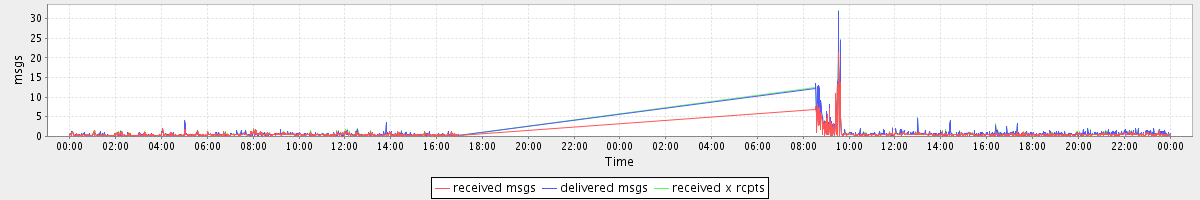 avg(received msgs) = 0.57 avg(delivered msgs) = 0.72 avg(received x rcpts) = 0.77