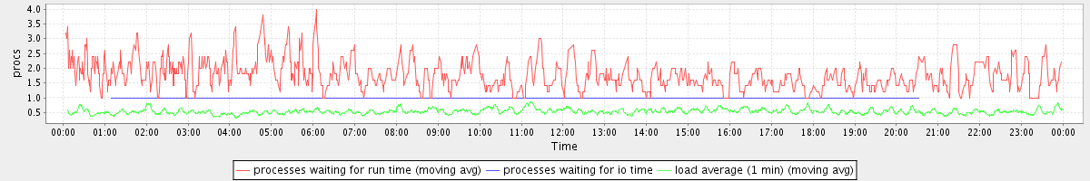 avg(processes waiting for run time) = 0.68 avg(processes waiting for io time) = 0.01 avg(load average (1 min)) = 0.54