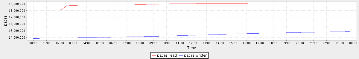 avg(pages read) = 18912977.20 avg(pages written) = 14354938.35