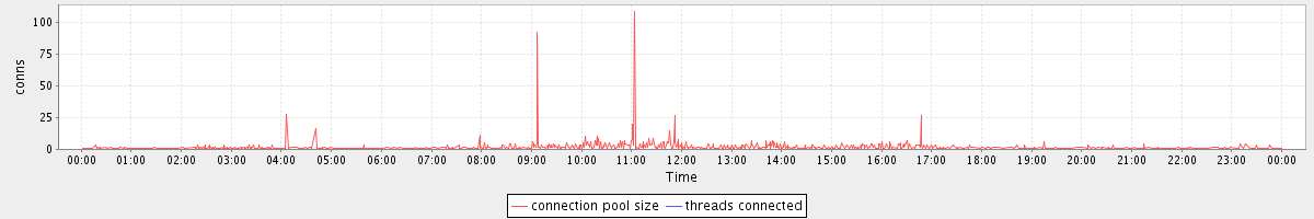 avg(connection pool size) = 1.38 avg(threads connected) = 0.00