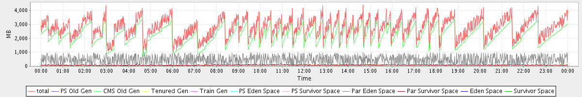 avg(total) = 2769.43 avg(PS Old Gen) = 0.00 avg(CMS Old Gen) = 2222.90 avg(Tenured Gen) = 0.00 avg(Train Gen) = 0.00 avg(PS Eden Space) = 0.00 avg(PS Survivor Space) = 0.00 avg(Par Eden Space) = 471.91 avg(Par Survivor Space) = 74.62 avg(Eden Space) = 0.00 avg(Survivor Space) = 0.00