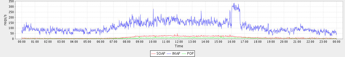 Host zm08.stanford.edu: Mailboxd: Request Rate by Client Protocol