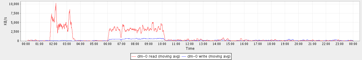 avg(sda2 read) = 0.05 avg(sda2 write) = 6.54
