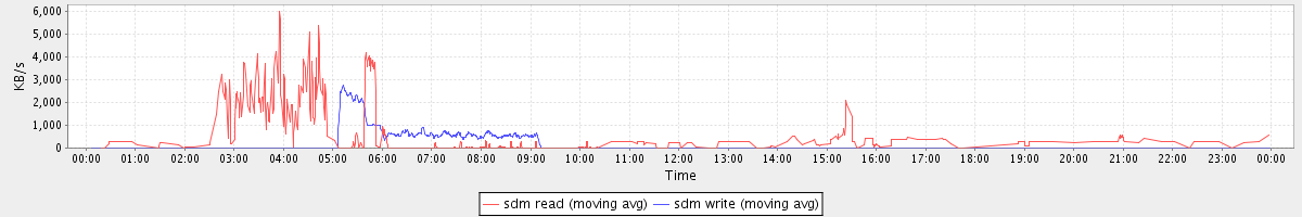 avg(sda read) = 1.43 avg(sda write) = 4.49
