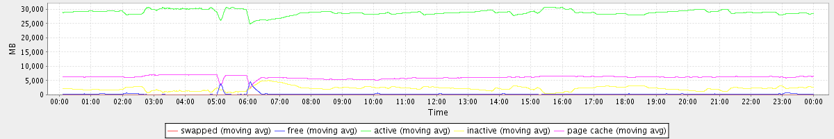 avg(swapped) = 0.25 avg(free) = 271.72 avg(active) = 28918.26 avg(inactive) = 2213.63 avg(page cache) = 6167.51