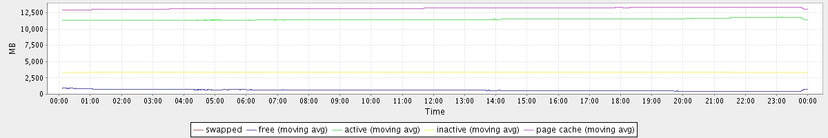 avg(swapped) = 0.00 avg(free) = 599.97 avg(active) = 11476.21 avg(inactive) = 3398.10 avg(page cache) = 13184.66