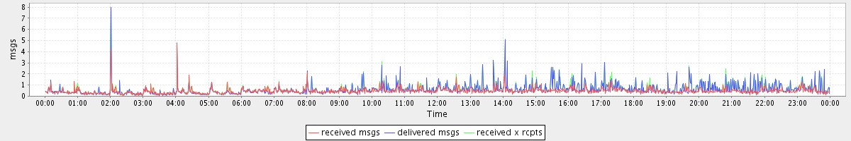 avg(received msgs) = 0.46 avg(delivered msgs) = 0.59 avg(received x rcpts) = 0.65