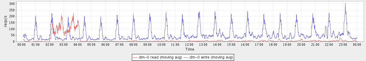avg(dm-1 read) = 1304.10 avg(dm-1 write) = 235.24