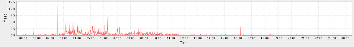 avg(DeleteAccountRequest) = 21894.00 avg(GetFreeBusyRequest) = 2086.88 avg(SyncGalRequest) = 3078.87 avg(CheckRecurConflictsRequest) = 568.57 avg(SendInviteReplyRequest) = 697.45 avg(SetAppointmentRequest) = 780.19 avg(AutoCompleteRequest) = 848.38 avg(FolderActionRequest.empty) = 3362.24 avg(BackupRequest) = 12191.50 avg(GetQuotaUsageRequest) = 984.00