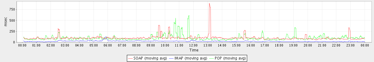 Host zm08.stanford.edu: Mailboxd: Response Time by Client Protocol