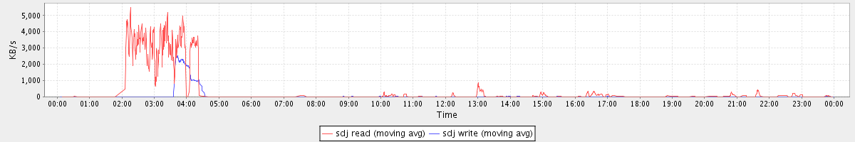 avg(sdj read) = 5.34 avg(sdj write) = 0.36