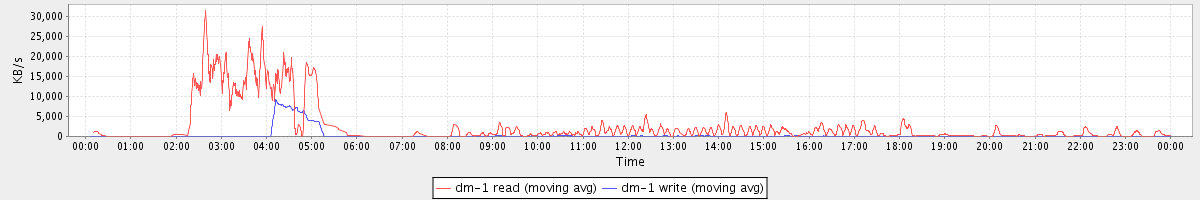 avg(dm-1 read) = 2231.20 avg(dm-1 write) = 323.79