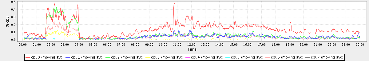 avg(cpu0) = 0.14 avg(cpu1) = 0.03 avg(cpu2) = 0.06 avg(cpu3) = 0.01 avg(cpu4) = 0.00 avg(cpu5) = 0.00 avg(cpu6) = 0.04 avg(cpu7) = 0.00