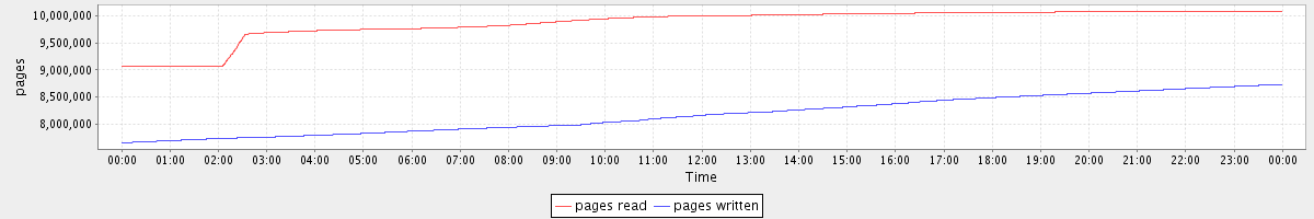 avg(pages read) = 9862739.23 avg(pages written) = 8176615.70