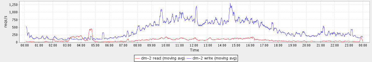 avg(dm-1 read) = 1699.59 avg(dm-1 write) = 306.45