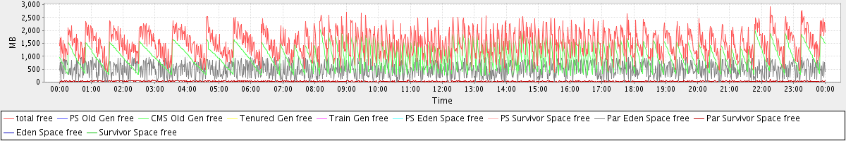 avg(total free) = 1508.62 avg(PS Old Gen free) = 0.00 avg(CMS Old Gen free) = 977.22 avg(Tenured Gen free) = 0.00 avg(Train Gen free) = 0.00 avg(PS Eden Space free) = 0.00 avg(PS Survivor Space free) = 0.00 avg(Par Eden Space free) = 501.48 avg(Par Survivor Space free) = 29.92 avg(Eden Space free) = 0.00 avg(Survivor Space free) = 0.00