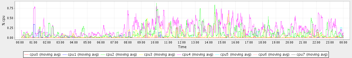 avg(cpu0) = 0.01 avg(cpu1) = 0.01 avg(cpu2) = 0.10 avg(cpu3) = 0.05 avg(cpu4) = 0.21 avg(cpu5) = 0.01 avg(cpu6) = 0.00 avg(cpu7) = 0.00