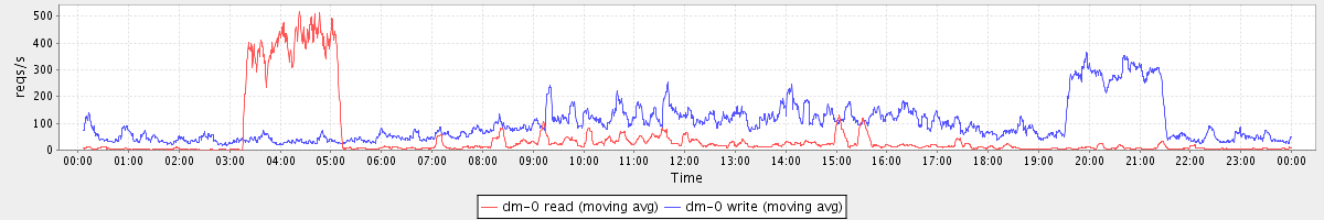 avg(dm-0 read) = 840.90 avg(dm-0 write) = 390.51