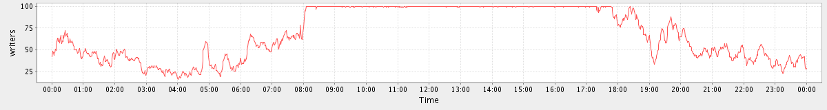 avg(user) = 34.51 avg(sys) = 5.84 avg(idle) = 55.57 avg(iowait) = 3.66 avg(nice) = 0.00 avg(irq) = 0.03 avg(softirq) = 0.38