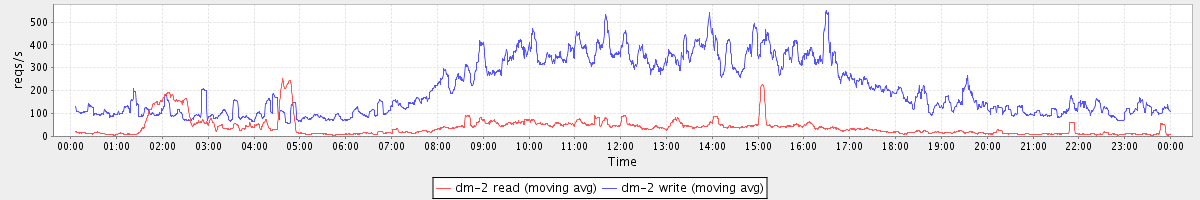 avg(dm-0 read) = 913.49 avg(dm-0 write) = 295.67