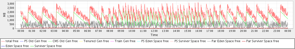 avg(total free) = 1703.86 avg(PS Old Gen free) = 0.00 avg(CMS Old Gen free) = 1175.40 avg(Tenured Gen free) = 0.00 avg(Train Gen free) = 0.00 avg(PS Eden Space free) = 0.00 avg(PS Survivor Space free) = 0.00 avg(Par Eden Space free) = 480.89 avg(Par Survivor Space free) = 47.56 avg(Eden Space free) = 0.00 avg(Survivor Space free) = 0.00
