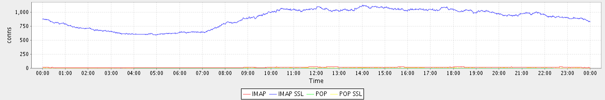 avg(IMAP) = 13.95 avg(IMAP SSL) = 895.63 avg(POP) = 0.01 avg(POP SSL) = 2.40