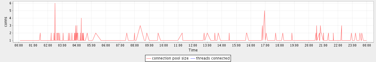 avg(connection pool size) = 0.35 avg(threads connected) = 0.00