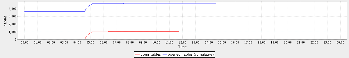 avg(open_tables) = 1071.62 avg(opened_tables (cumulative)) = 4494.08