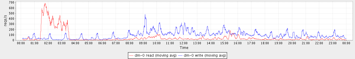 avg(dm-0 read) = 934.47 avg(dm-0 write) = 375.52
