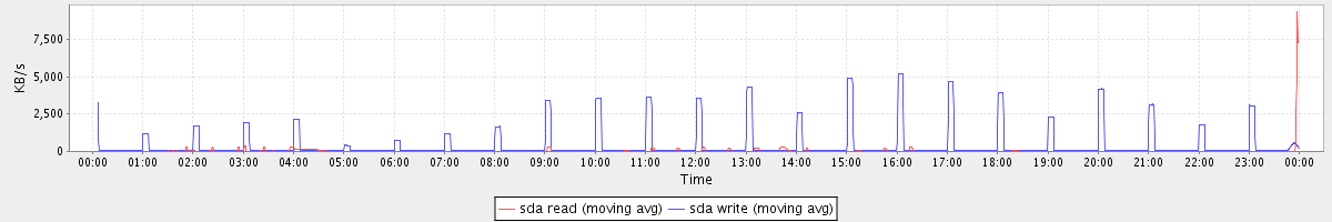 avg(sda read) = 23.01 avg(sda write) = 384.74