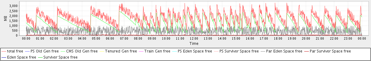 avg(total free) = 1776.72 avg(PS Old Gen free) = 0.00 avg(CMS Old Gen free) = 1267.19 avg(Tenured Gen free) = 0.00 avg(Train Gen free) = 0.00 avg(PS Eden Space free) = 0.00 avg(PS Survivor Space free) = 0.00 avg(Par Eden Space free) = 470.55 avg(Par Survivor Space free) = 38.98 avg(Eden Space free) = 0.00 avg(Survivor Space free) = 0.00