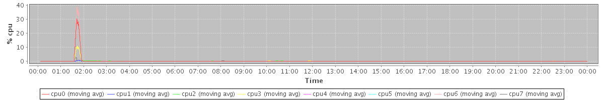 avg(cpu0) = 0.25 avg(cpu1) = 0.01 avg(cpu2) = 0.04 avg(cpu3) = 0.10 avg(cpu4) = 0.01 avg(cpu5) = 0.01 avg(cpu6) = 0.31 avg(cpu7) = 0.03