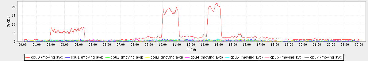 avg(cpu0) = 3.71 avg(cpu1) = 0.42 avg(cpu2) = 0.46 avg(cpu3) = 0.37 avg(cpu4) = 0.44 avg(cpu5) = 0.43 avg(cpu6) = 0.46 avg(cpu7) = 0.35