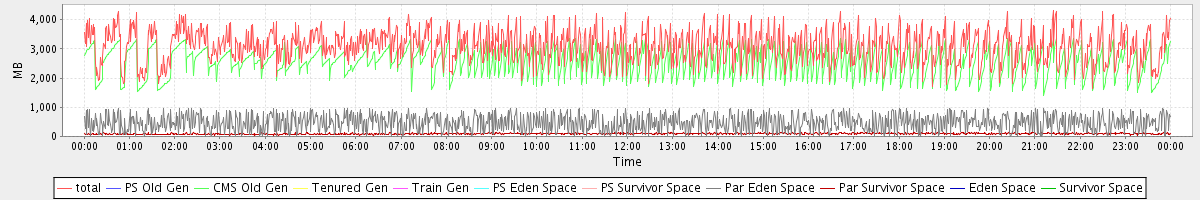 avg(total) = 3100.88 avg(PS Old Gen) = 0.00 avg(CMS Old Gen) = 2535.75 avg(Tenured Gen) = 0.00 avg(Train Gen) = 0.00 avg(PS Eden Space) = 0.00 avg(PS Survivor Space) = 0.00 avg(Par Eden Space) = 473.81 avg(Par Survivor Space) = 91.33 avg(Eden Space) = 0.00 avg(Survivor Space) = 0.00