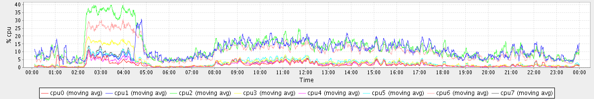 avg(cpu0) = 1.92 avg(cpu1) = 10.79 avg(cpu2) = 13.24 avg(cpu3) = 3.48 avg(cpu4) = 1.90 avg(cpu5) = 3.04 avg(cpu6) = 10.60 avg(cpu7) = 2.60