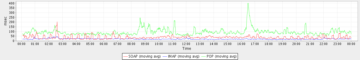 avg(IMAP) = 14.30 avg(IMAP SSL) = 976.45 avg(POP) = 0.01 avg(POP SSL) = 3.09