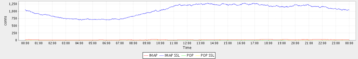 avg(IMAP) = 17.28 avg(IMAP SSL) = 1033.17 avg(POP) = 0.00 avg(POP SSL) = 2.03