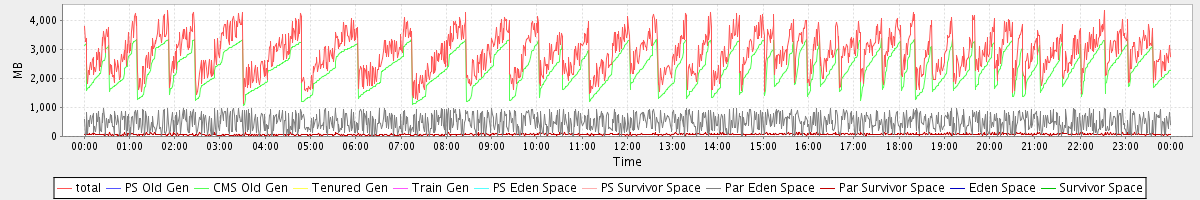 avg(total) = 2882.11 avg(PS Old Gen) = 0.00 avg(CMS Old Gen) = 2319.14 avg(Tenured Gen) = 0.00 avg(Train Gen) = 0.00 avg(PS Eden Space) = 0.00 avg(PS Survivor Space) = 0.00 avg(Par Eden Space) = 491.46 avg(Par Survivor Space) = 71.51 avg(Eden Space) = 0.00 avg(Survivor Space) = 0.00