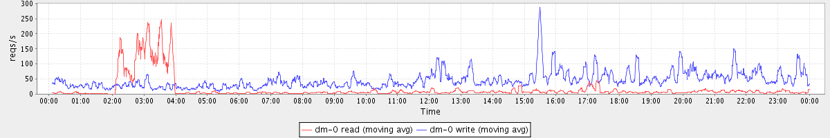 avg(dm-0 read) = 16.44 avg(dm-0 write) = 46.56
