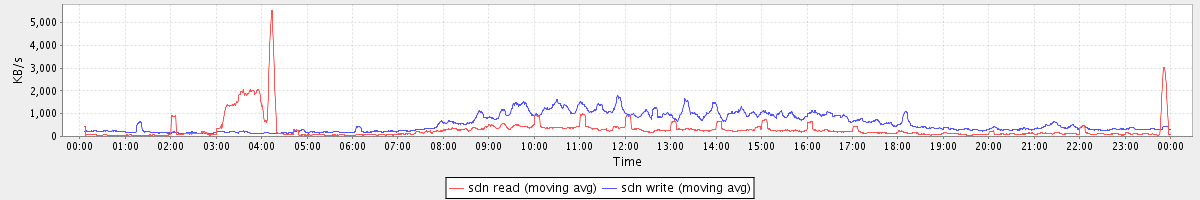 avg(sda read) = 2.14 avg(sda write) = 4.87