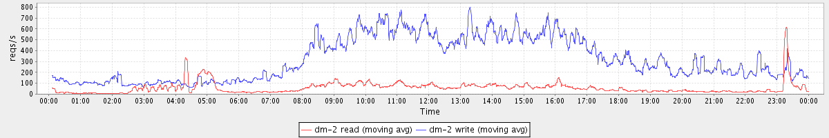 avg(dm-0 read) = 721.50 avg(dm-0 write) = 439.77