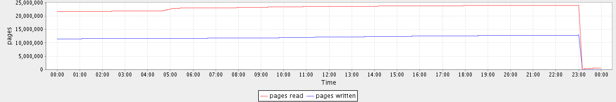 avg(pages read) = 22458528.49 avg(pages written) = 11713548.78