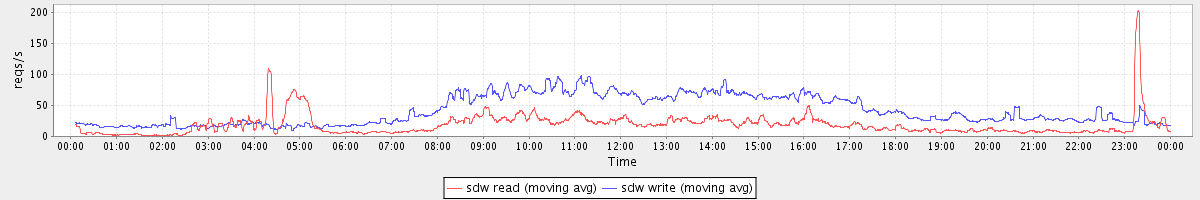 avg(sda read) = 23.98 avg(sda write) = 449.24