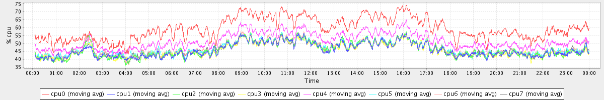 avg(cpu0) = 59.25 avg(cpu1) = 45.81 avg(cpu2) = 46.03 avg(cpu3) = 45.52 avg(cpu4) = 51.49 avg(cpu5) = 46.59 avg(cpu6) = 46.75 avg(cpu7) = 46.23