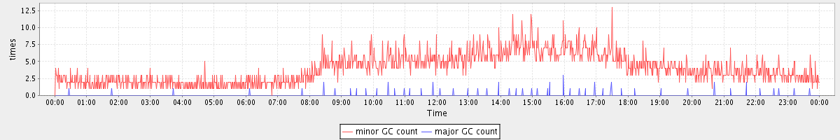 avg(minor GC count) = 3.95 avg(major GC count) = 0.04