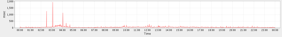avg(DeleteAccountRequest) = 18200.00 avg(BackupQueryRequest) = 945.00 avg(SyncGalRequest) = 1400.80 avg(FolderActionRequest.delete) = 1131.00 avg(SendInviteReplyRequest) = 814.16 avg(AutoCompleteRequest) = 771.42 avg(ApplyFilterRulesRequest) = 14110.88 avg(FolderActionRequest.empty) = 2472.96 avg(BackupRequest) = 5720.50 avg(GetQuotaUsageRequest) = 2394.00