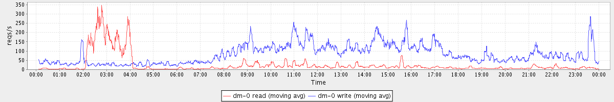 avg(dm-0 read) = 25.62 avg(dm-0 write) = 82.47