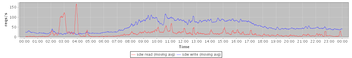 avg(sda2 read) = 0.10 avg(sda2 write) = 9.23