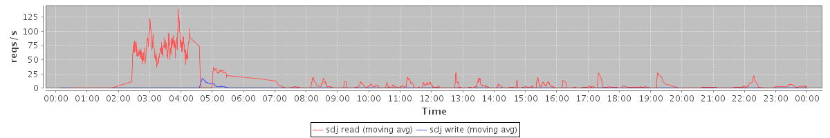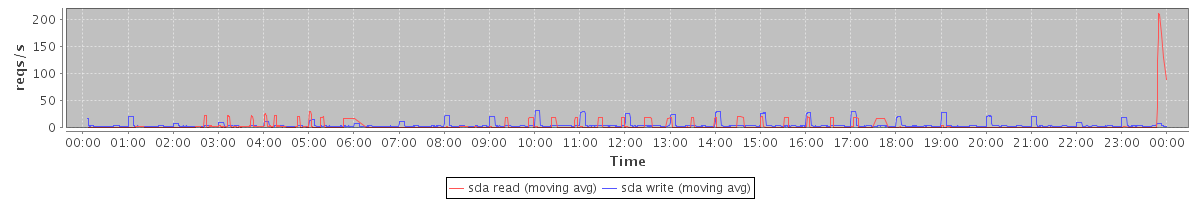 avg(sda read) = 24.20 avg(sda write) = 357.77