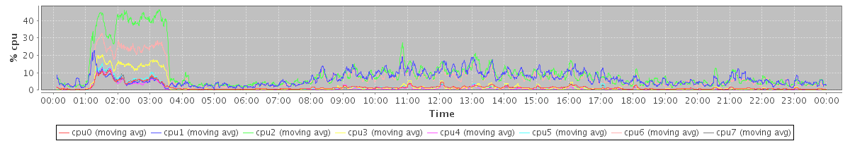 avg(cpu0) = 1.29 avg(cpu1) = 0.28 avg(cpu2) = 0.33 avg(cpu3) = 0.22 avg(cpu4) = 0.15 avg(cpu5) = 0.18 avg(cpu6) = 0.23 avg(cpu7) = 0.19